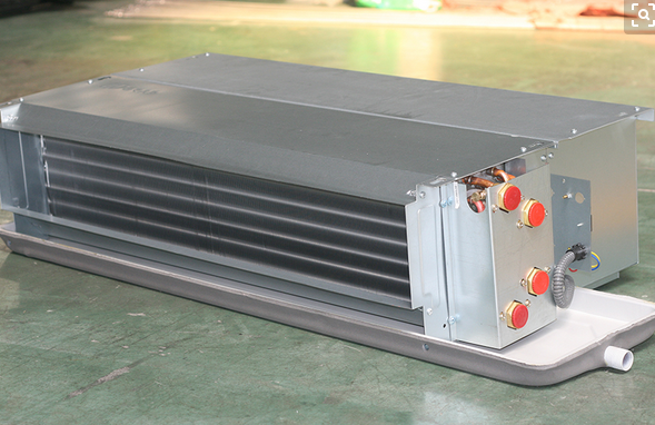 暗盒(吊頂嵌入式)單元,相對美觀的進出口暴露在吊頂下,風機、電機、線圈均放置在吊頂上方,屬于半開放式安裝單元。露天裝置都有漂亮的外殼,有出風口和進風口,安裝在室外的房間里。隱藏單元的外殼通常由鍍鋅鋼板制成。